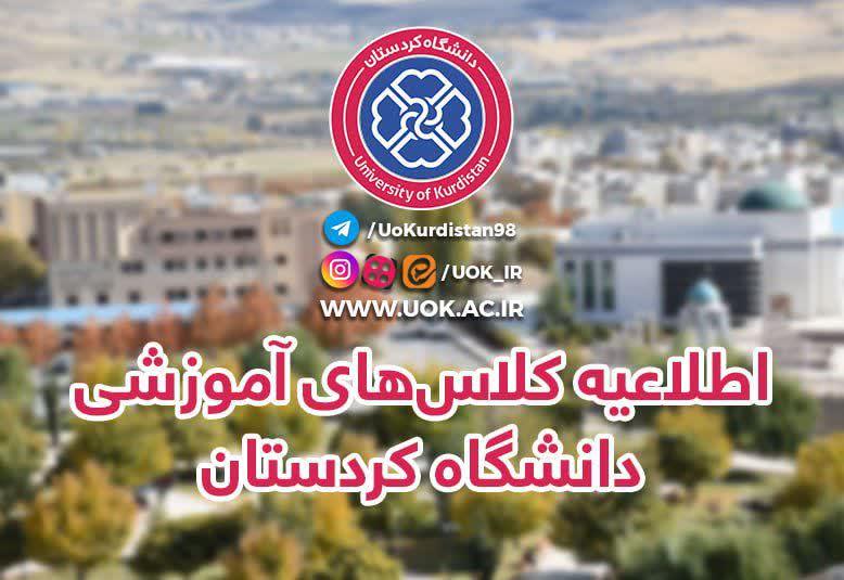 اطلاعیه کلاسهای آموزشی دانشگاه کردستان (شنبه 15 آذرماه)