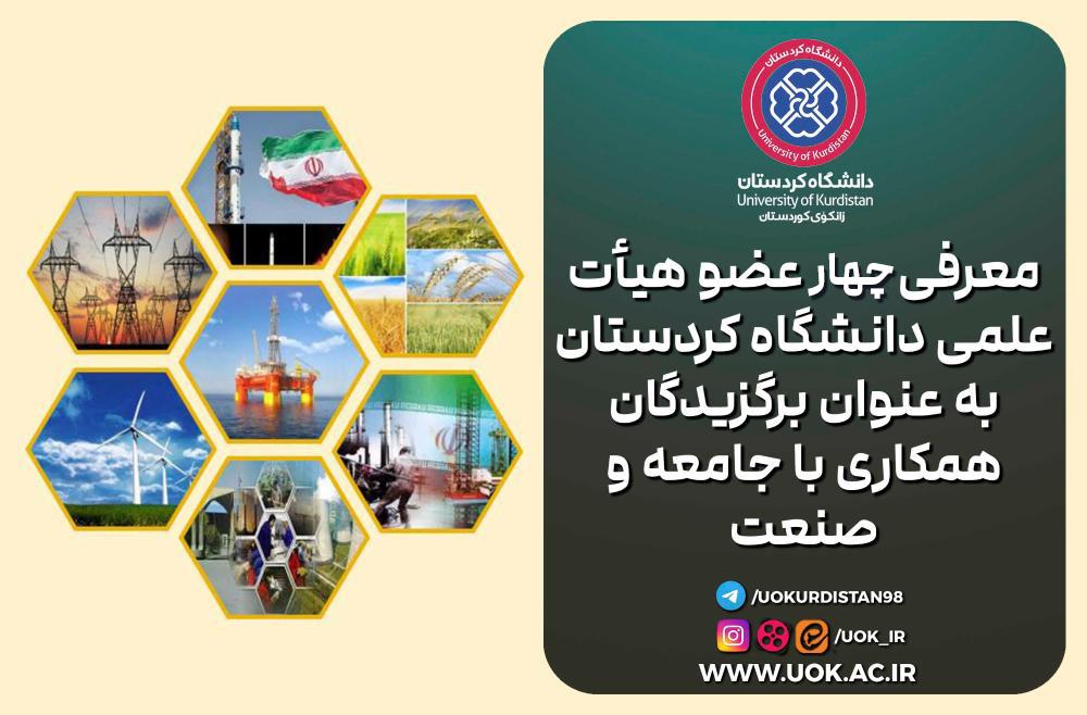 معرفی چهار عضو هیأت علمی دانشگاە کردستان به عنوان برگزیدگان همکاری با جامعه و صنعت
